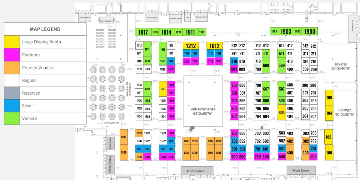 You must purchase booth space to reserve a vehicle. Set-up for vehicles and large displays will be on Monday ONLY from 1:00 pm – 3:00 pm. You will be sent a scheduled vehicle load-in appointment 10-14 days in advance.